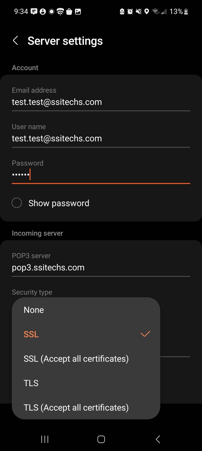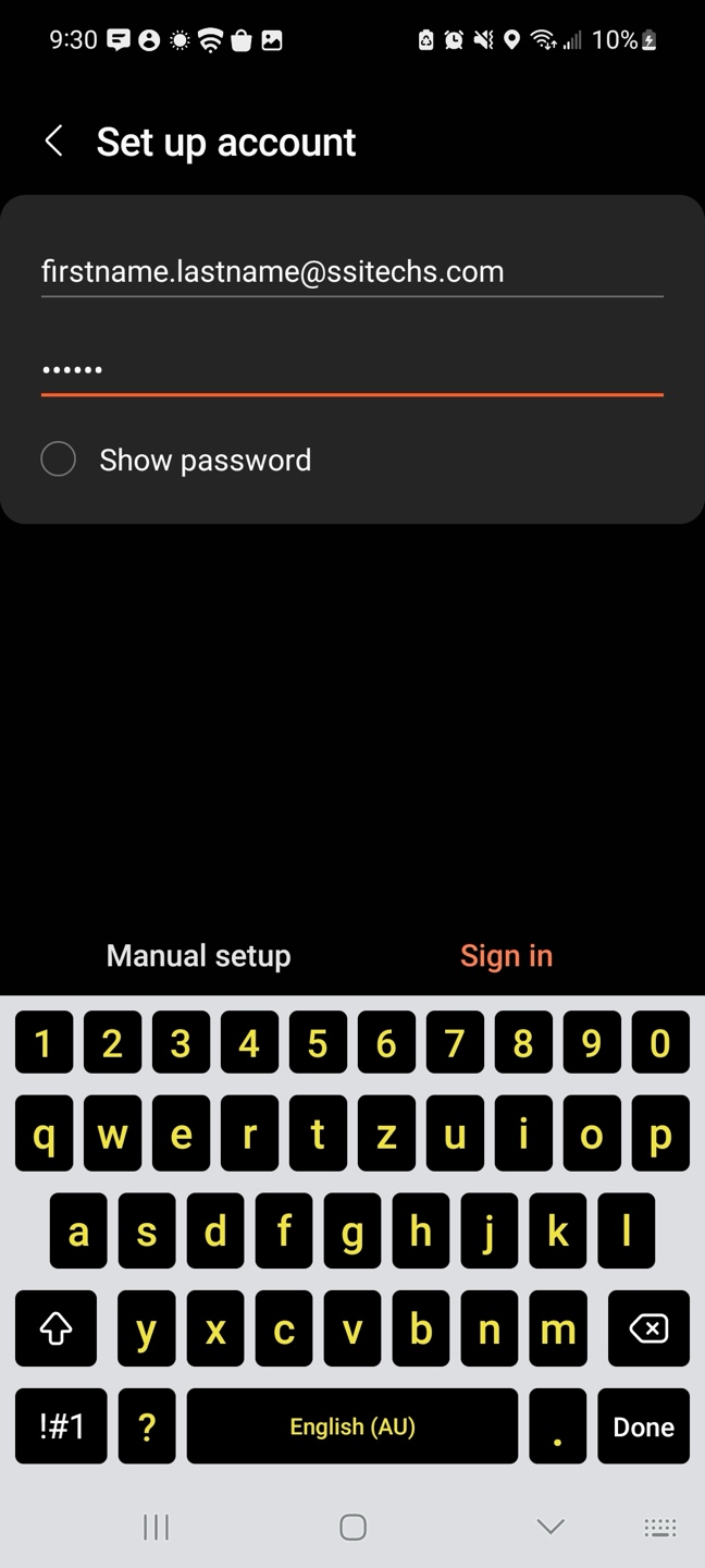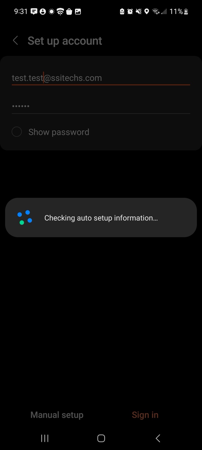Select Email Setup Email Select Other / Enter Email And Password / See Example Below First Name.Lastname @ssitechs.com
